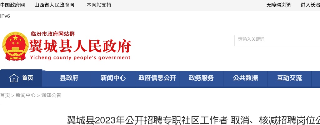 原标题:翼城县2023年公开招聘专职社区工作者 取消、核减招聘岗位公告